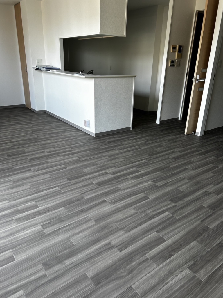 弊社は、ご予算や生活背景に応じて床材の変更と、汚れていたクロスの貼り替えをご提案させていただきました。床は、0歳のお子様がいらっしゃる事を加味し、手入れのしやすいクッションフロアを提案し、今後ペットも飼われるご予定だったので消臭・防カビ性能のクロスで仕上げさせていただきました。