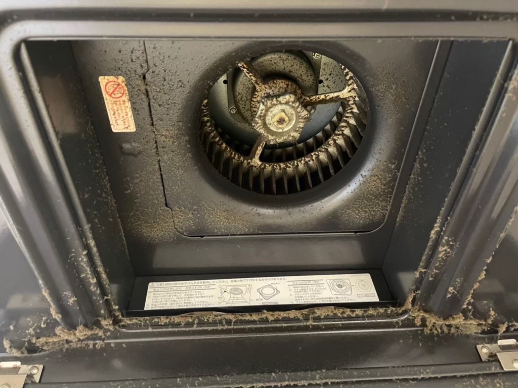 なかなか手が回らないレンジフードの分解洗浄をさせていただきました。シロッコファンやフィルターなどの部品をつけ置き洗いをして、長年蓄積された油汚れを落とすことができました。