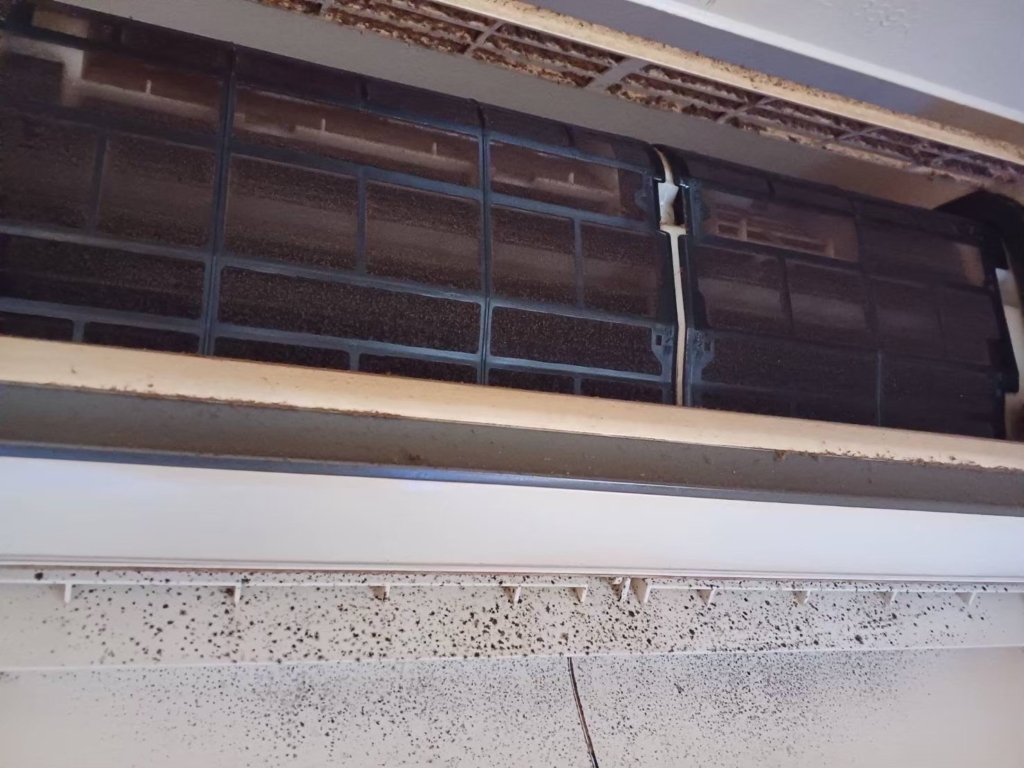 購入から15年経過、初めてのエアコン洗浄でした。高圧噴霧器による洗浄を行うことで、エアコン内部のカビなどの汚れがごっそり落ちます。洗浄後は、エアコンの効きが良くなったと大変喜んでいただきました。